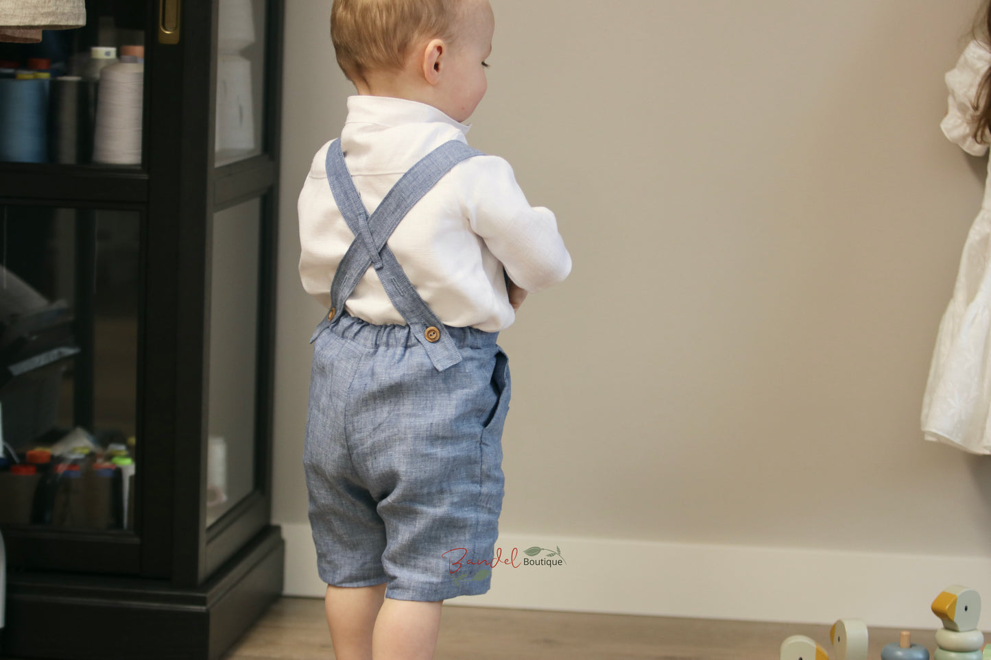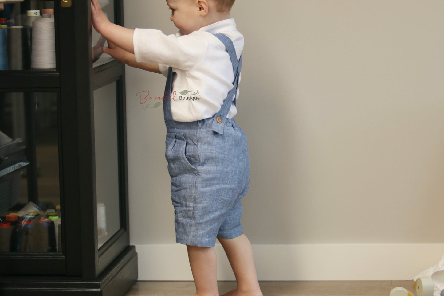 Let your little ones look stylish and feel comfortable with our Linen Short Dungarees. Expertly designed for comfort and style, our Linen Shorts romper is perfect for any occasion. Featuring an elasticated waistband for a snug fit and convenient side pockets, this romper also offers adjustable back buttonhole closures. Ideal for pageboys and ring bearers. Choose from a variety of colors to match any wedding theme.